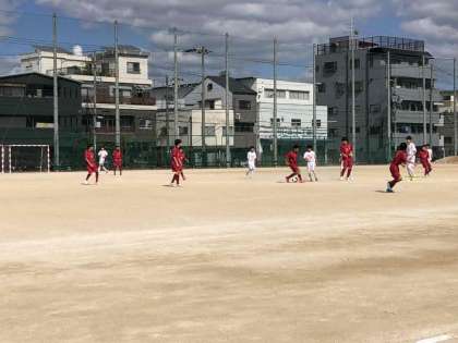 また、同じ時間帯に、四條畷市総合公園にて、大阪府サッカー協会主催、フューチャーリーグU-13第3節が行われました。相手はFCグリーンウェーブ2nd。梅香が11人そろわず10人での参加となったため、公式戦としては棄権となりましたが、相手から1人加わってもらい、練習試合をさせて頂きました。チームでのDFの仕方をはじめ、学びの多い試合となりました。