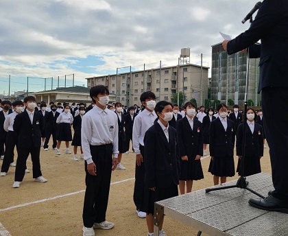 きょうの全校集会では、後期生徒会の認証式が行われました。