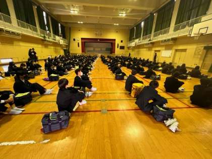 全校集会では、学校長から(特に3年生に向けて)挨拶のお話が、また5時間目は、修学旅行の最終チェックを体育館で行いました。