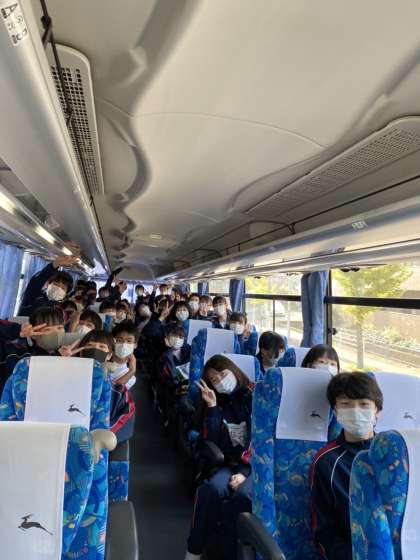 兵庫県に入りました。1組バス車内の様子です。みんな、これからの活動にワクワクです!
