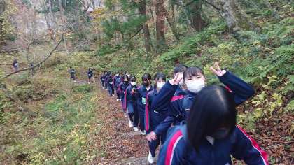 森のブナハイキング班は、標高800メートル付近まで歩きます。