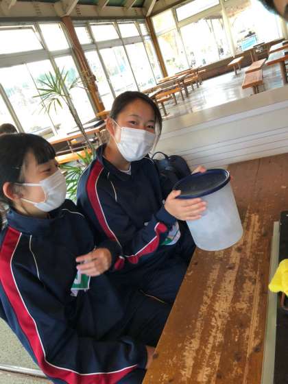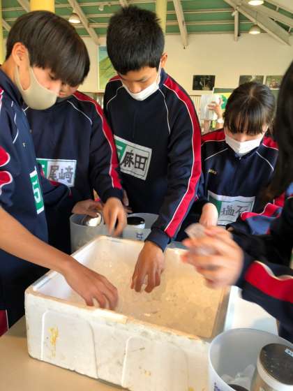 容器に氷と塩を詰めて、いま転がしタイムです。