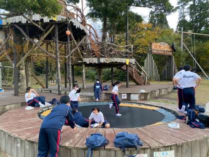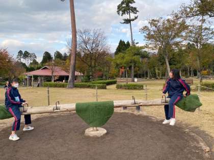 退所式まで少し時間ができたので、広場で自由に遊んでいます。