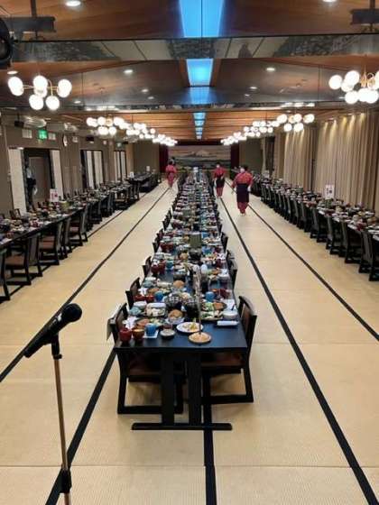 2階の大宴会場で、食事の準備がされているのは、圧巻の光景です。