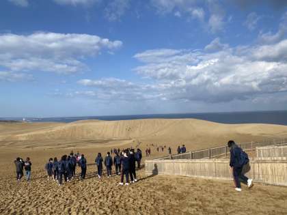 「初めて鳥取砂丘に来た!」という生徒も多く、みんな大興奮です。
