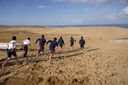 短い時間ですが、奥に見える砂山の頂上まで行く生徒もいました!