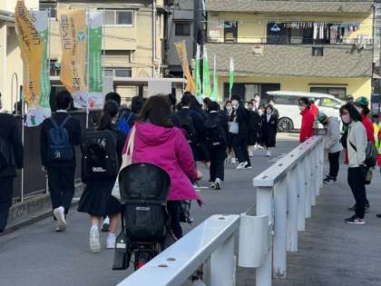 いつも以上に元気よくあいさつをする生徒、緊張して会釈だけの生徒と様々でしたが、