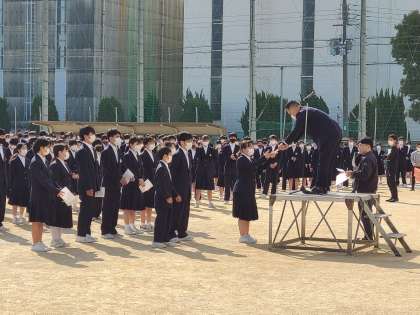 まず今年度前期の生徒会役員や学級委員の認証式がありました。