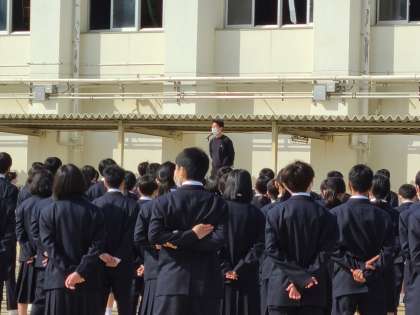 次に校長先生から役割の話がありました。そして今日から新たな取り組みで教職員によるリレートークが始まりました。今日は3年生担任のある先生から中学校時代の部活を通して学んだこと(あいさつ、清掃の大切さ)の話がありました。