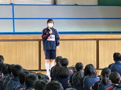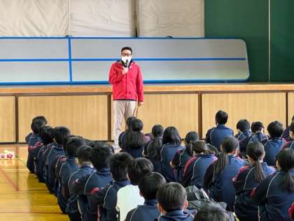出発式では、教頭先生からのあいさつがあり、その後、学級委員の代表のあいさつ、学年主任からの諸注意がありました。