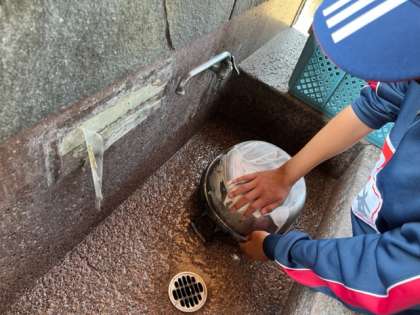 ・鍋が焦げ付かないようにクレンザーを底に塗っています。