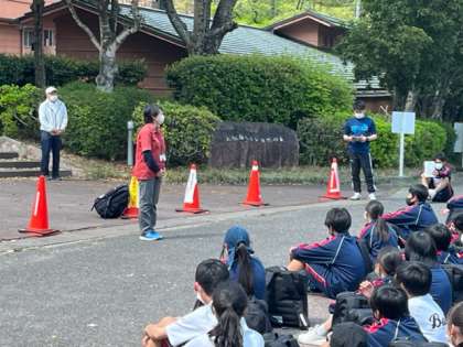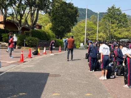 野外炊飯の片付けに時間がかかり、現在50分遅れでの退所式となっております。