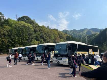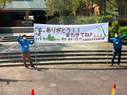 2日間お世話になった、大阪府立少年自然の家を学校に向けて出発しました。ありがとうございました。