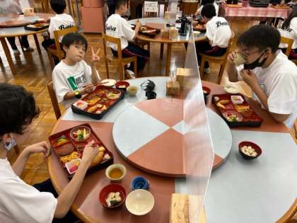 日中は、山が滑りやすくなっていたため雨天プログラムをしましたが、結構な運動量で、みんなお腹ぺこぺこのようです。