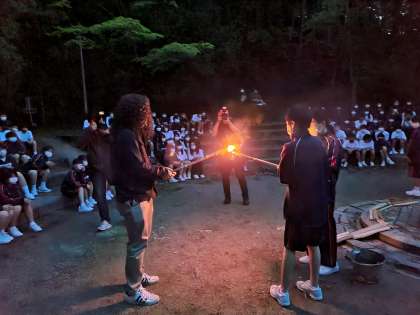 キャンプファイヤーの様子です。火の神様の登場です。
