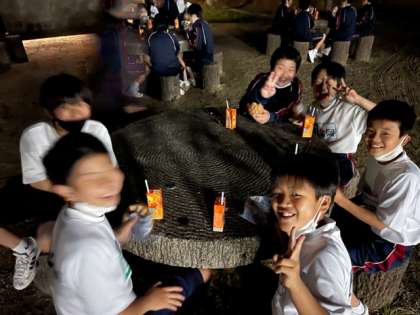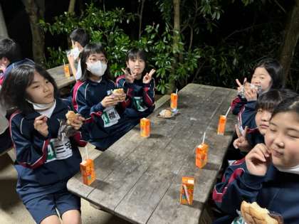 大盛り上がりのキャンプファイヤーが終わり、今は「補食タイム」です。