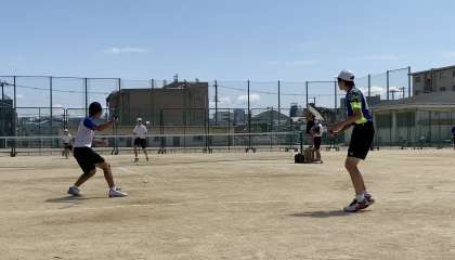 1・2ブロックから大阪市大会に進めるのは10ペアですが、夏のような日差しの中での試合ということもあり、なかなか練習通りにプレーできていませんでした。最終的に気持ちの面で他を上回ったペアが勝ち進んでいったように感じます。