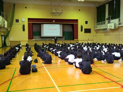 1年生は、本日6時間目に体育館でいじめ対策防止授業を実施しました。本校では、来週5月16日月曜日に「いじめについて考える日」を設定しています。今日はその前段階としての取り組みです。