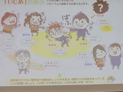 テーマは自分で考え、選び、動ける人になることです。いじめに対して現状、概要などを学習しました。今日の授業の内容を、日常生活で少しでも考えるようにできればいいですね。みんなでしっかりいじめについて考えていきましょう。