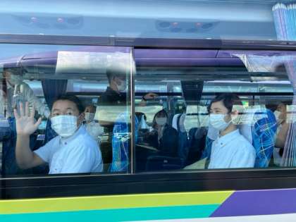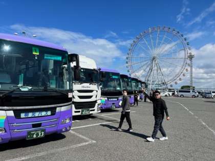 淡路サービスエリアに到着しました。きょうは天気がよく、明石海峡大橋からは大阪のビル群がよく見えました。