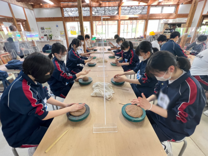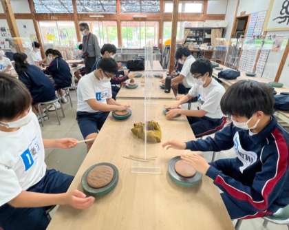 陶芸体験が始まりました。親方さんの説明を聞き終え、今からスタートです。