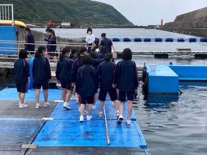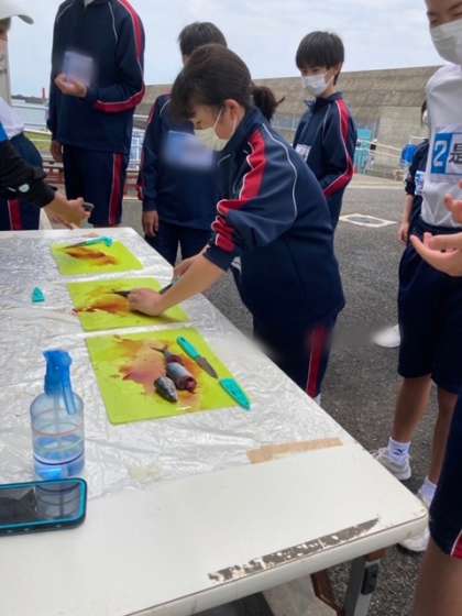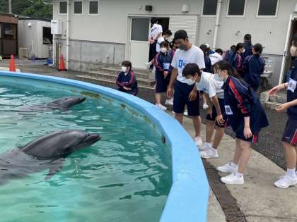 イルカをタッチしたり、観察したり、エサを用意したり、たくさんの体験をしています。