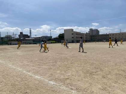 本日、大阪市秋季大会1ブロック予選、予選リーグ第2節が行われました。相手は三国中学校。先週、平野フェスティバル1位トーナメント1回戦(結果2-1勝)で戦った大阪市ベスト8のチームです。その時は人工芝での50分試合でしたが、今日は土での60分試合と、状況が異なる中での試合でした。そんな中、生徒たちはいつも以上に落ち着いたプレーを展開し、何度もチャンスを作り出し、前半3-1、後半2-1で、計5-2で勝ちました。5得点獲得できたのは嬉しいことですが、2失点していることを今後の課題と捉え、改善していきましょう!