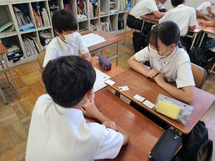 今日のテーマはちがいのちがい。3年生になれば、公民的分野の人権の部分で学習する部分です。4人班で、あっていいちがいとあってはいけないちがいについて議論をしていました。これを機会に、人権感覚を高めていくことができればいいですね。