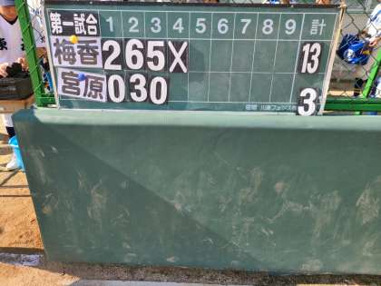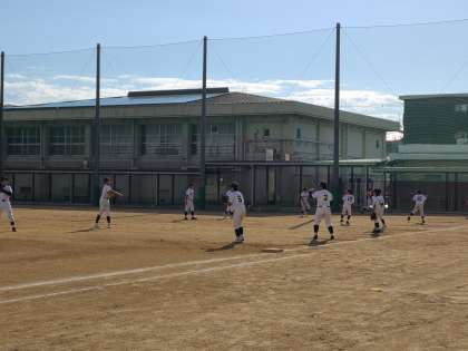 10月16日、大阪市立宮原中学校との第1支部大会Aリーグ1回戦でした。梅香は、初回足をからめて2点先制します。その裏宮原打線を0に抑え、2回に梅香打線が爆発します。この回に5本の短長打で8点差にします。その裏エラーも絡んで3点とられますが、3回に再び打線がつながり5点追加します。梅香はその裏を抑え、コールドゲームで勝つことができました。新チーム公式戦初勝利です。まだまだ課題や修正すべき点があるので、来週の練習で修正していきます。