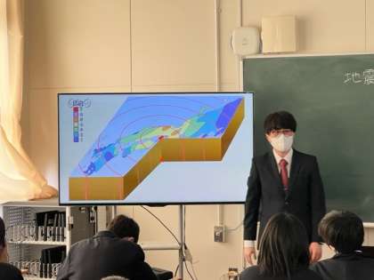 単元は「地震」で、電子黒板を使いながら分かりやすくて楽しい授業が行われました!