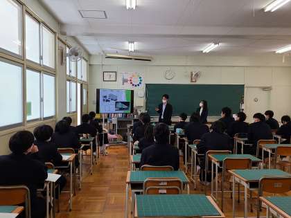 3月3日(金)此花区役所からいくつか企業をご紹介いただき、1年生は各職種の講師による職業講話を実施しました。