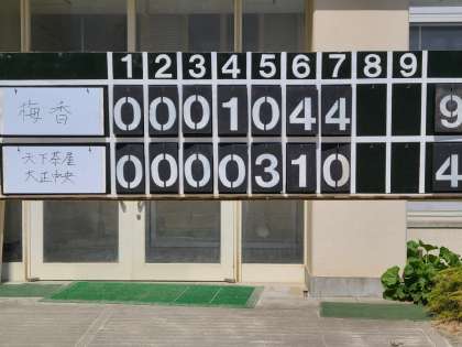 天下茶屋中の投手は、とても球速があり、梅香は三振ばかりの序盤でした。梅香も打たせてとり、0対0で中盤を迎えます。梅香は4回ランナーを出し、スクイズで先制。しかし5回裏1つのエラーで同点に追い付かれ、続く打者に本塁打を打たれてしまいます。しかし梅香は6回に反撃。2本の長打で逆転に成功。なんとか終盤粘り、1回戦を突破することができました。