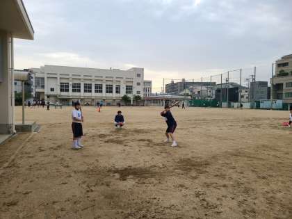 本日の新入生部活動体験の様子です。運動場の部活では、各部活新入生に体験させながら、その部活の楽しさや技術などを伝えていました。なお新入生の部活動体験は明日までです。来週の月曜日には部活動編成もあるので、入部届を出し忘れないようにしましょう。
