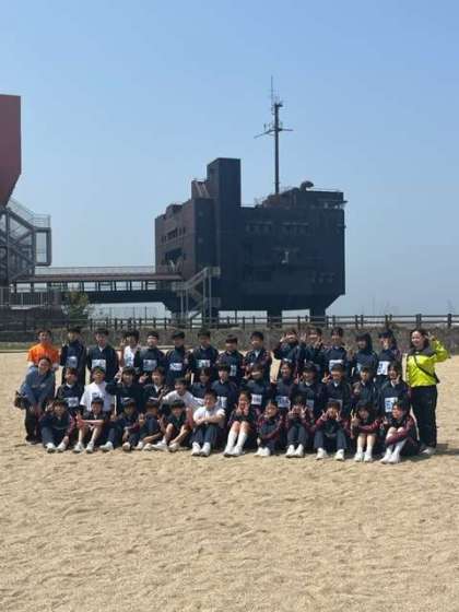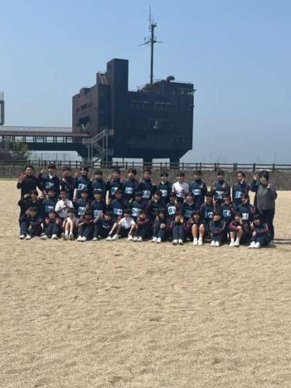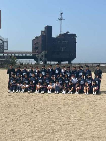 砂浜で学級写真を撮りました。