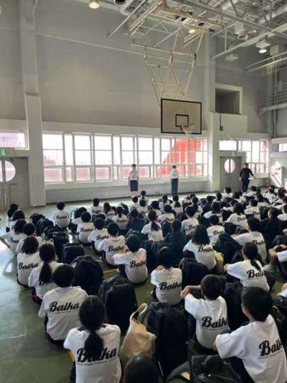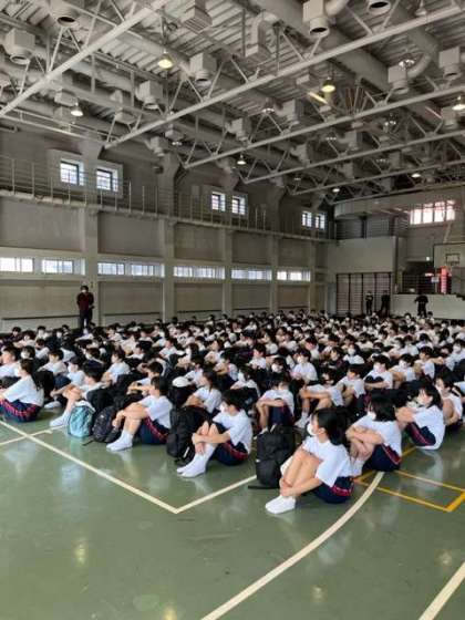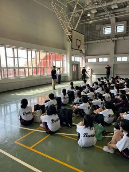 生徒代表あいさつのあと、施設の方のお話を聞きました。