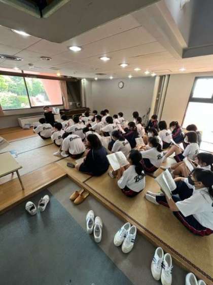 それぞれの係に分かれて係会議の時間です。しっかり話を聞いて班のみんなに伝えます。