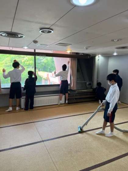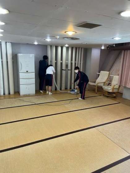 次に来た人が気持ちよく使えるように丁寧に清掃中です。