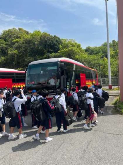 2日間お世話になった海洋センターに別れを告げ、これよりバスは梅香中学校へ向かいます。