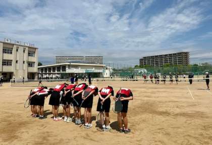 4月29日(土)大阪中学校ソフトテニス選手権の大阪市1ブロック予選が行われました。今回1ブロックの公立中学校10校から、大阪市大会に進めるのは、わずか4校ということで、厳しい戦いになりました。