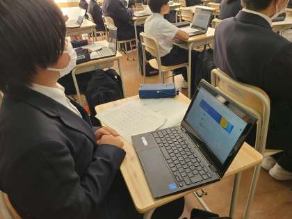 6月16日に実施される小中交流会に向けて、代表生徒が頑張っています。今日はプレゼンに関する取り組みを行っていました。