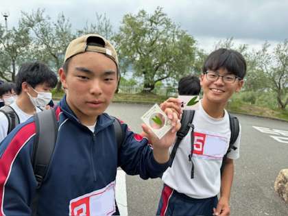 オリーブの葉しおりづくりです。見つけたら幸せになれるというハートの形のオリーブの葉を探してしおりにします。