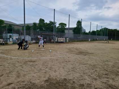 6月24日、大阪市歌島中学校と試合をしました。テスト明けでエラーによる失点を覚悟しましたが、とても緊迫した試合となりました。