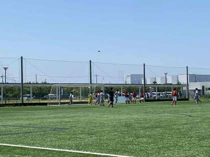 本日、J-GREEN堺にて、大阪府中央大会ベスト16リーグ第2節が行われました。相手は、三島地区3位で勝ち上がりの高槻市立第二中学校。攻撃と守備が激しく入れ替わる立ち上がりとなりましたが、開始10分、サイドから抜け出した梅香がGKの逆をつき先制点をあげます。その後、相手のPKを含め、何度もシュートチャンスを防いだ梅香は、後半に3得点。1失点こそ許しますが、4-1で勝ちました。