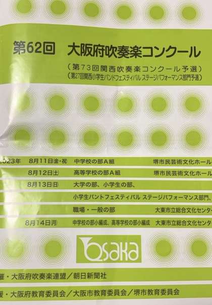 本日、フェニーチェ堺で第62回大阪府吹奏楽コンクール大阪府大会が開催されました。