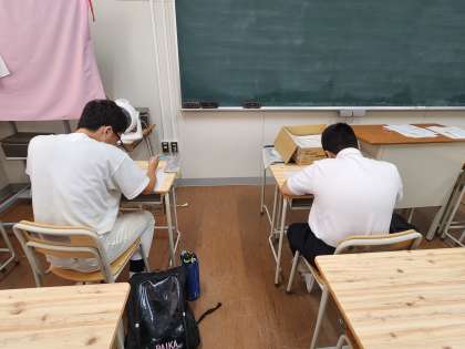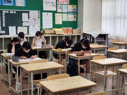 2年生社会科の補習の様子です。希望者を対象に実施しました。チャレンジテスト過去問の資料の読み取り問題に積極的に取り組んでいました。
