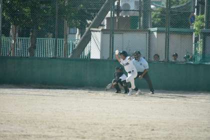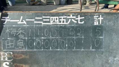 梅香は初回相手のエラーで先制。その裏ピンチを迎えますが、なんとか打ちとります。梅香は、2回にランナーをためてスクイズで追加点。ここから梅香投手はリズムよく4回まで完全投球。内野ゴロを打たせ、追加点を待ちます。梅香は5回チャンスを作り、内野ゴロの間に追加点。しかし後はつづかず1点どまり。5.6回と田島はランナーは出しますが、梅香の好プレイに阻まれ0点。最終回に梅香は長打で追加点。しかしその裏エラーでピンチを迎えます。しかし梅香遊撃手の本塁への見事な送球で締めくくり、ゲームセット。5対0で勝利することができました。これで市ベスト16。5年ぶりの2次トーナメントです。まだまだ課題はたくさんありますが、全力プレイで勝利に向かって頑張っていき、来週も勝利したいです。本日も暑い中たくさんの保護者のみなさまがお越しくださいました。応援ありがとうございました。