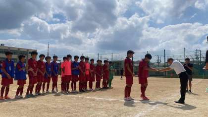 本日、3年生最後となる大阪市秋季大会準決勝が行われました。相手は、佃中学校。梅香同様、ここまで無失点で勝ち上がってきているチームです。全体のバランスが整っており、賢く攻撃を仕掛けてくる相手に梅香は苦戦します。前半、深く攻め込んだ梅香が先制点を奪うも、すぐに中央突破から失点し1-1に。後半、梅香が中央から攻め込み追加点を挙げるも、後半終了3分前にサイドからのクロスで2-2に。