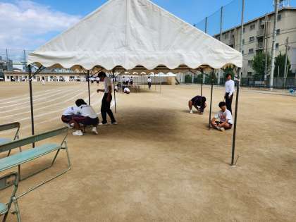 体育大会準備の様子です。係生徒の力を借りて、明日の体育大会準備が進んでいます。係生徒のみなさん、ありがとうございました。