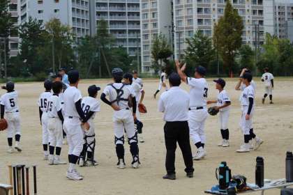 なお大阪府秋季総体準決勝(ベスト4→2)は、来週10月14日(土)に中河内地区1位通過の八尾市立曙川南中学校との対戦が決定しています。開始時間は11時プレイボール予定、会場は八尾市立山本球場です。なお準決勝に勝利した場合は第2試合終了50分後(13時30分前後予定)から同日に決勝戦(三島地区1位通過の茨木市立茨木南中学校or三島地区4位通過の吹田市立高野台中学校の勝者)が行われます。大阪府約340チームの頂点に立てるように頑張ります。応援よろしくお願いいたします。