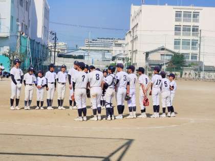 11月3日(金祝)、大阪市第1支部大会決勝トーナメント1回戦が行われました。梅香は本日の1試合目、対戦相手は大阪市美津島中学校です。梅香は先週よりも体調不良等で戦力を欠いているなか、この試合を勝ちきるのかが課題でした。今日はいつもと違い、大幅に打順を変えて試合に挑みました。